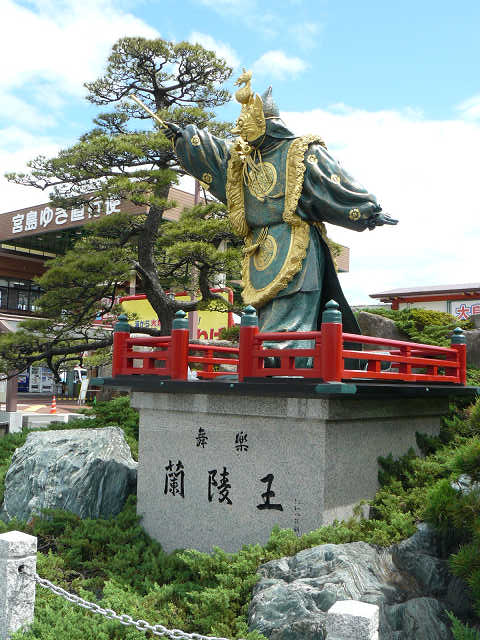 宮島口のフェリー乗り場前広場の 舞楽「蘭陵王」像