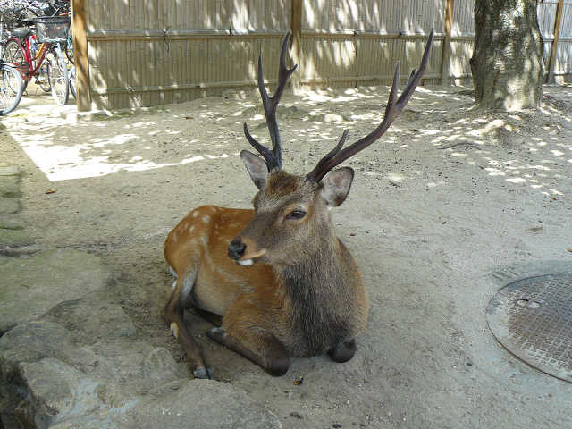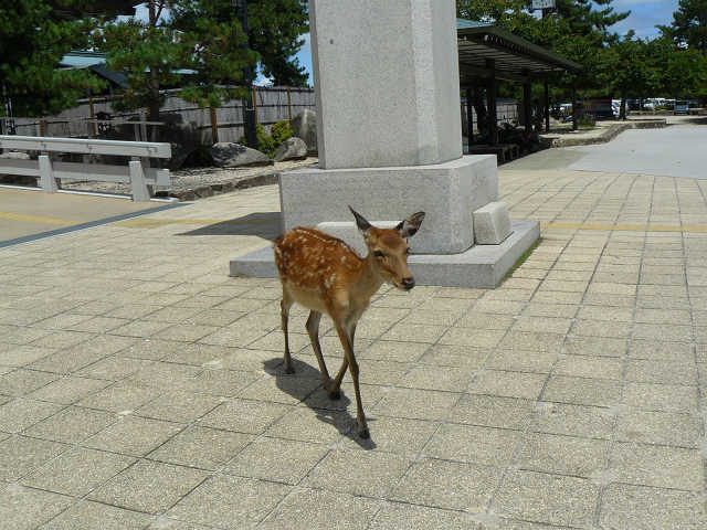 宮島に着くと鹿が迎えてくれます
