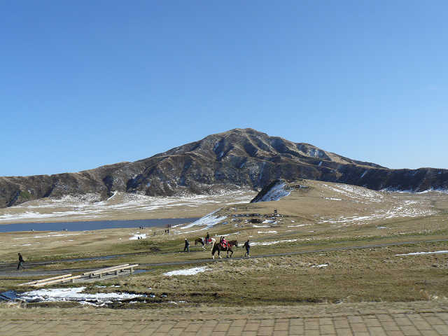 熊本城の観光を終え、次に向かったのは阿蘇山です。周囲は山焼きのため、枯草などが綺麗に焼き払われていました。