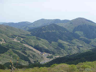 東から南東にかけては比婆山連峰がそびえ、眼下には雷の下を走った大膳原が明るい。周囲360度に思い出の残る山々が点在している。明るい山頂から再度毛無山、大毛無山、猿政山などを眺めて下山を開始する。