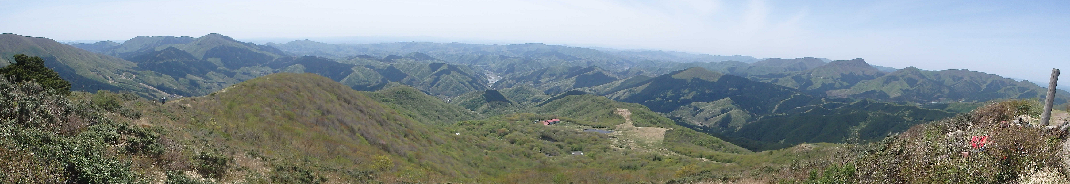 下山は一周回りで南ノ原へ向かうコースを採る。山頂からわずかに下ると左へ大膳原への分岐を通過、この地点から大膳原へは1kmの行程である。左に比婆山連峰、右に毛無山や猿政山、正面には福田毛無山、背後に吾妻山とこれ以上無い展望に囲まれて坂を下る。