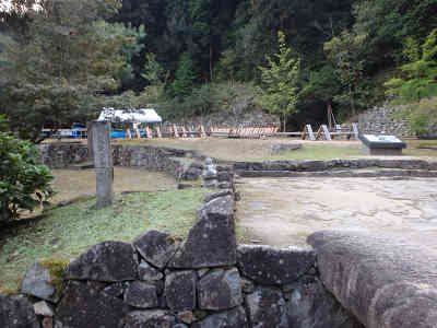 その原因は諸説あるそうだが、織田信雄が誤って焼き払ったとか、敗走する明智光秀軍による放火説などが有名である。天守台を出発、元ハ見寺跡、三重の塔への分岐まで引き返し進路を南西へ採る。