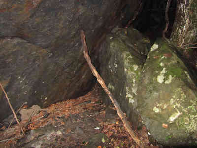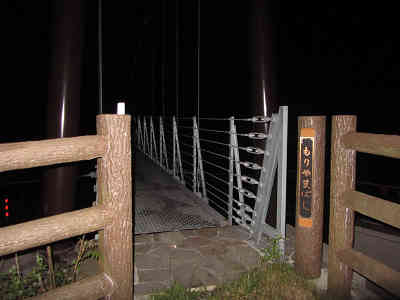 大岩のある場所で道が少し不鮮明となり、ようやくヘッドランプを点灯、正しい道を探す。ここまで一気に歩いてきたので休憩を取る。そのうち後続の登山者が大門沢小屋方面から歩いてきたので一緒に下山を開始。17分で最初の吊り橋を通過、更に11分で鉄製の橋を通過、その後2分で2番目の吊り橋を通過、更に20分でジグザグな坂を下り、着いたところには偽木の柵が設置されていた。この先で最後の吊橋の森山橋を渡り、吊り橋渡りは終了。結局大岩の場所から1時間で広河内庵という小屋に着いた。