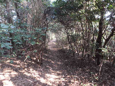 頭上を自然林が覆い、木漏れ日差す明るい道が続く。間もなく周囲は竹林帯に変わり、真っ直ぐ天に向かって伸びた竹が密集している様が美しい。やがて登山道の傾斜が少し緩み、快適に歩を進むことができる。間もなく竹林帯が終われば、再び頭上を自然林が覆う。
