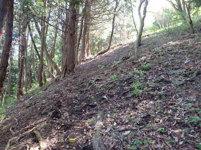 自然林に囲まれ高度を上げていると、再び熊のプーさんの案内が現れ、周囲の植生は植林帯へと変化する。更に急な坂を登っていると、再び頭上は自然林に変わり、これを踏ん張れば反射板の建つ701mピークの広場へ着いた。広場からは南西に櫃ヶ山、南に三坂山がそびえ、素晴らしい展望に満足である。反射板横で小休止の後、東へ向かう。