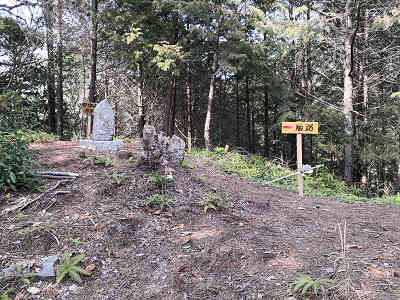 明るい日差しの下で面白いほど一気に高度が上がる。すぐに巡拝路のピークに着き、八十八ヶ所巡りはこのピークから南へ下っていた。この場所からは巡拝路を外れて北へ続くコースに入る。入口には「安寧山磨崖仏南ルート」の案内が置かれていた。