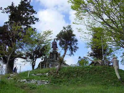 いきなり大きな岩山があり、その上には明治天皇陛下の陶像が据えられていた。「遺義昴揚の目的を以て昭和33年4月これを建る 吉部郷友会」との説明があった。なぜこの山に明治天皇の陶像があるのか不思議である。頂上には20名程度の登山客がひしめいていたが、山頂は広く別に気にならない。