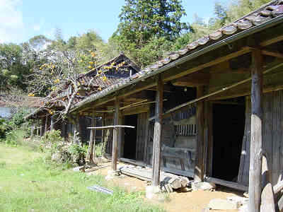 台風による倒木を避けながらゆっくりと降りた。登山口の廃屋まで降りてじっくりと廃屋を眺めるとなかなかの景色であることに気がついた。廃屋の先に柿の木がたっており誰も取らない黄色の柿の実がもののあはれを醸し出している気がした。