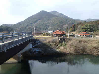 そのまま道なりに下ると、県道へ出会う。丁字路を左折し、次の分岐を右折する。入口には昔案内板が建っていた痕跡が残っている。そのまま道なりに進むと竹林の中につけられた道に入る。峠を越えて少し下れば登山時に分岐した民家前へ到着、分岐を右折すれば登山者駐車場。これで一周回りの登山は無事終了した。