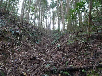 そのまま中国自動車道へ向かって直進し、吉和37ガードを潜った先を右折する。右に中国自動車道を見ながら坂を登ると、進路は左に変わる。竹林の先で植生は植林帯に変わり、少し坂を登って尾根へ出る。