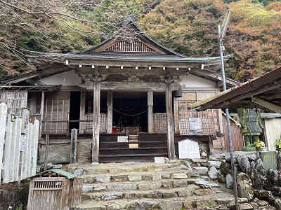 分教場跡に祀られた祠を過ごし更に坂を登る。植林の下に続く道を辿れば金山姫神、天照皇大御神、素戔嗚尊などが祀られた17丁の火燧権現跡に着く。かつては山頂の愛宕神社と同様に火の神火産霊命が祀られていたそうだ。案内には愛宕神社まで約3.7kmと書かれている。