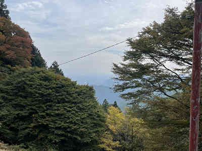社務所で御朱印帳を頂き神社を出発。石段を下り登山者休憩所に下りて昼食を摂った後、下山は月輪寺を経由することにした。休憩地から愛宕神社へ向かって進み、階段手前の灯篭付近から右へ向かって道が続いている。