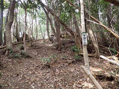この案内は要所に掲示されているため、途中で道に迷う心配は無い。自然林の下につけられた道を辿れば、この先で進路は左に変わる。案内を確認して坂に取り付く。