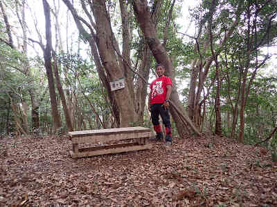 最後に真っ直ぐ続く急登を踏ん張り右折すると、四等三角点の置かれた場所に着いた。三角点周囲は樹林の背が高く展望は得られなかった。三角点を踏んだので次は山頂248mを目指す。