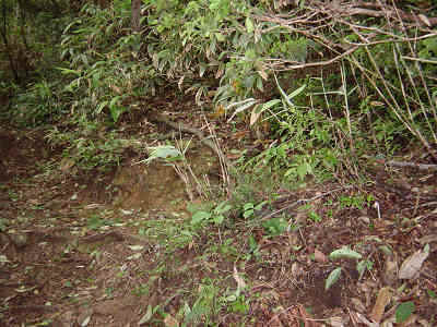 登山口から少し入ると左方向に道が分かれておりそのまま杉林を抜けると滑りやすい道が続いている。この道は坂が急なので途中何度も休憩しながら進んで行く。途中からの展望は無く少しずつ高度を稼いで行く。