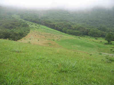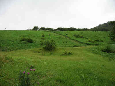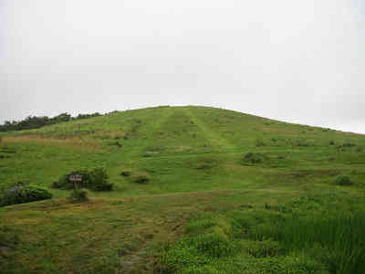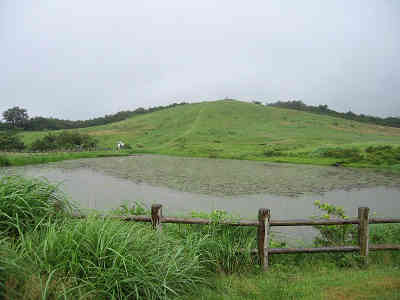 ブナ林を抜けた先はもうキャンプ場で一周周りのハイキングは無事終了した。再び池原に向かい草原の中に立つ。草原の中の一際小高い場所が小坊主と呼ばれる場所で、下から眺める姿が美しい。また、小坊主から眺める草原の展望も美しく、いつまで見ていても飽きない展望だ。