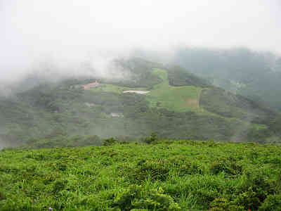 一瞬の展望がとても嬉しくて、いつまでも見えた方向を眺めていると、再び霧が晴れた。しかも休暇村の方向に向かって素晴らしい展望が広がった。