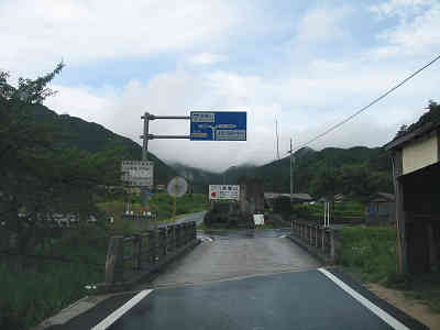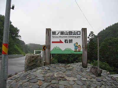八川駅付近から進路を西に採り、県道49号を馬木へ向かう さて、今回登る予定の吾妻山方面だが、山頂は霧に包まれているものの、周辺は明るくなり、今にも青空がのぞきそうになってきた。天候はまもなく回復しそうなので大峠に向かう。矢筈山の下を南西に進めば分岐が現れ、右が吾妻山の国民休暇村へ、左が大膳原への登山口と案内されている。この分岐を左に採り登山口へ向かう。