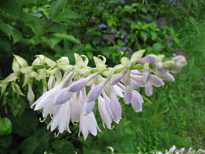 ベンチの置かれた鞍部に到着 早速擬宝珠の花がお出迎え、吾妻山はお花畑の山であることをすっかり忘れていた。すぐに大膳原に着いたが、周囲は霧に包まれて展望がない。雨に濡れた花を求めて周辺散策を続け、たっぷり時間をかけて周囲の花を観賞、その後山頂に向かって出発した。