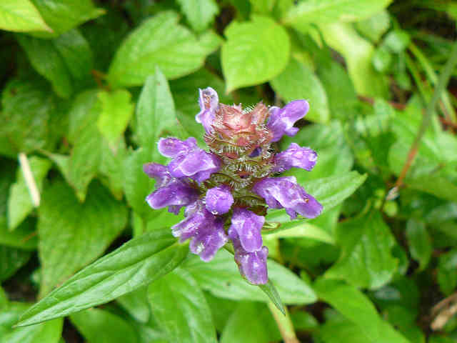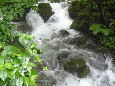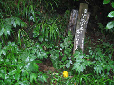 この先はもうゆっくり歩き、名水の場所に着くが、雨水と湧き水が混ざっているので飲むのはやめた。道の左右に咲く花を眺めながら元来た道を引き返し、無事登山口に到着した。