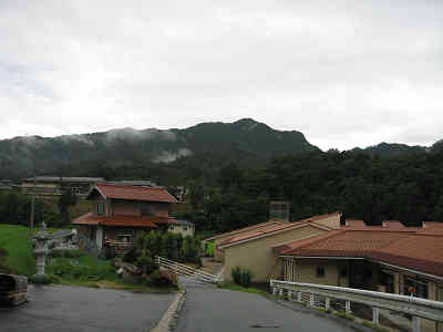 雨に濡れた美しい樹林を眺めながら登山口に到着 次は温泉ということで、今回は亀嵩温泉玉峰山荘に向かう。国道314号に引き返し、古市から国道を離れ県道を通り温泉に到着、とてもきれいな施設である。この温泉はアルカリ温泉で、石けんで体を洗った後に、体がヌルヌルする感じがした。目の前には玉峰山が聳えているのだが、露天風呂からは眺めることはできなかった。