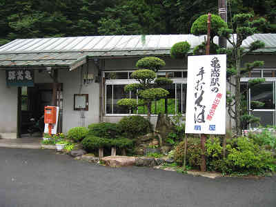 温泉を出発し、周囲を眺めていたら十三仏の石像が立っていた。これば先祖供養のために建てられたものだそうだ。その後、目の前に広がる玉峰山を眺めた後、亀嵩駅に立ち寄り、駅のそば屋さんにてそばを頂く。いつもの山かけそばを食べているとホームに木次線の電車が到着した。とても雰囲気のよい店である。休日を一日たっぷりと楽しんだ。