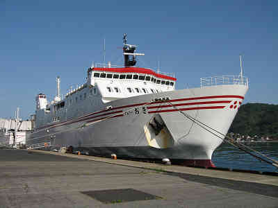 時刻は午後5時を過ぎ、そろそろレンタカーを返す時刻が迫ってきた。ガソリンスタンドに行き燃料を満タンにする。やはり大して走っておらず、700円程度を支払ったが隠岐ではレギュラーガソリン1リッターが185円、今日からガソリンの価格が値上がりした事を思い出した。 すぐに車を返却し港まで送ってもらった。西郷港の周囲を散策し、乗船券売場で高速船レインボーの乗船券を2550円で購入し、港で待っていると凄いスピードで高速船が港に入ってきた。