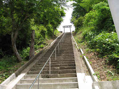国分寺を出発し、次は玉若酢命(たまわかすみこと)神社に向かう。元来た道を引き返し、隠岐高校の横を抜けて西郷港方面に戻るとすぐに標識に導かれて神社に向かう。少し遠回りをしたようだが、赤い西郷大橋を左手に過ごした先に玉若酢命神社を見つけた。