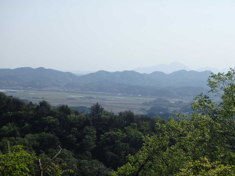新緑の美しい登山道を下っていると、大山を見晴らす展望地へ到着。この付近から眺める大山はとても美しいが、本日は黄砂のため残念な景色である。さて、間もなくトイレの置かれた別所登山口を通過、そのまま沢沿いを下れば下吉田バス停へ着いた。県道を左折し、進路を東へ採れば、登山口の吉田交流センターへ到着、一周回りの登山は無事終了した。