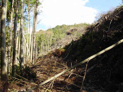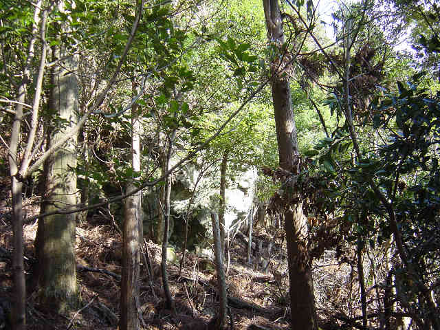 すぐ左手に墓地があり墓が三体立っている。竹藪の中を抜けると坂が急になりここからは錦町の大将陣を思い出すような植林帯の急登が始まった。尾根道までわずかではあったが一汗かいた。今日はゆっくり歩くことを心がけていたのでいつもに比べて疲労が少ない。このルートは直登ルートとなっており登山時間は少ないが坂は急だという説明があったのでなおさらスローペースとなる。