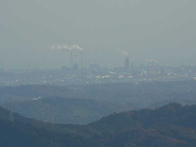 南西方面には宇部の霜降岳、その奥には宇部の工場群の煙が棚引いている。双眼鏡を取り出し、更に瀬戸内海を西方向に眺めて行くと関門海峡に架かる関門橋までを確認する事が出来た。