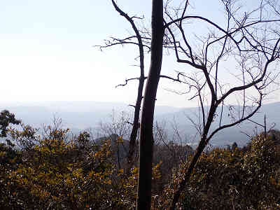やがて木に書かれた三段岩の案内を過ごし、緩やかな傾斜の道を進む。しばらく進むと三段岩の分岐へ到着、適当なところへリュックを置いて急な坂を下る。約50m下ると大岩が現れ、手前に一ノ岩、少し下には二ノ岩、三ノ岩と続いている。岩上に立てば大展望だが、やはり今日は霞み気味で遠くまで見晴らすことはできなかった。