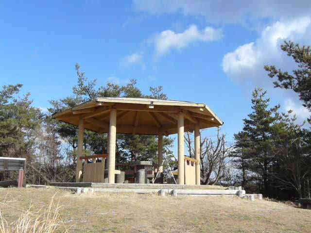 展望が美しい この展望所の更に奥にも展望地があるので進んでみる。途中の階段は凍結しており、大きなアンテナの周囲にはまだ雪が残っていた。やはり絵下山はとても寒い。上の展望地にも東屋が設置されており、この場所からも南方面から西へと続く展望を眺める事が出来る。風が強くなり、半袖ではさすがに寒くなってきたので服を着て先ほどの展望所まで戻る。