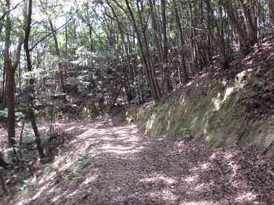 大岩を迂回しながら一気に高度を下げる。滑り易い所には補助のロープも渡され、安心して下る事ができそうだ。亀尾山・勘十郎岳を途中で眺めながら下山を続ける。やがて展望が無くなり竹林を通過、その後明るい自然林の下を進む。