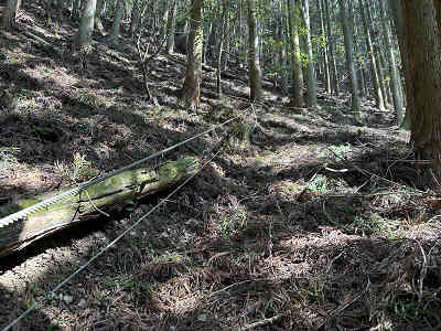 そのまま尾根道をたどり、わずかに高度を上げれば四等三角点の置かれた長尾山(520.6m)へ到着しました。この長尾山も周囲の樹林の背が高く展望は得られませんでした。雁飛山については次回西畑コースをとり、今回のコースとの違いを確認する予定です。その際に今回の三山を周回するかは当日の体調や時間との相談となるでしょう。