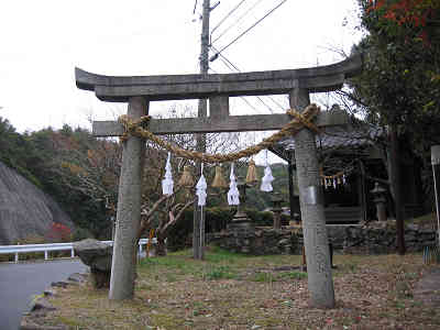 林道は更に右手に続いており、大谷地区への標識に従って更に林道を下るように進んで行くと間もなく左手に河内神社を見る。早速に登山の無事やたくさんのお願いをして先を進む。河内神社を過ぎるとすぐに右手に向かう道が現れ、その先に水晶山(岩倉山)・平家山の登山口の大谷集会所が見えてきた。