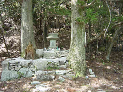 岩屋観音に参拝、大きな岩を眺める。なお、説明板に次のように記されている。 大同元年(806年)弘法大師が、この岩屋に自然石の観音を祀ったと伝えられています。昔、この山上一帯は老杉の茂る比類ない霊場であり、特に、この岩屋は霊場を慕って訪れる遠近の修行者の修禅の道場として、その地位を保ってきました。現在、ここは、灌木に包まれていますが、山麓にある神上寺の奥之院と定められています。参拝修禅する者も多く霊場の名残を止めています。