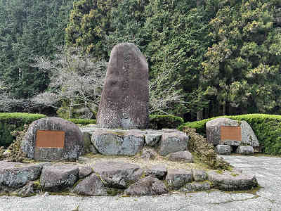 木製の階段を登ると、坂の傾斜が緩み、平坦な道に変わります。ここで、前回登山口として利用した歌野自然活用村へ続く分岐に出会いました。この分岐を過ぎて直進すると、進路は右へ90度変わり、この先から石鳥居を2つ潜れば、仲哀天皇殯葬所の西の岳に到着しました。なお、石鳥居には「桜井八幡宮」と彫られていました。