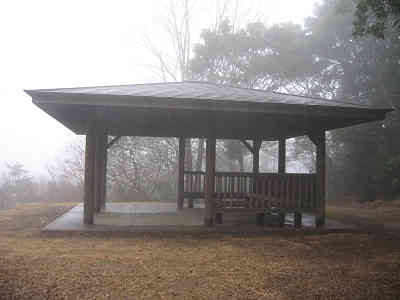一願堂と五輪塔 一願堂を下りて更に舗装道を進むとすぐに駐車場に着く。右手に横木の階段を見るので、ゆっくりと登って行き、最後の階段を登りきると極楽寺山最高点の693m、そこは東屋の立つ展望地である。ただし、展望自体は極楽寺から南方面の展望の方が優れているようだ。その先で蛇の池へ0.5kmの標識を見るが、いずれ展望の優れた日に散策をすることにする。