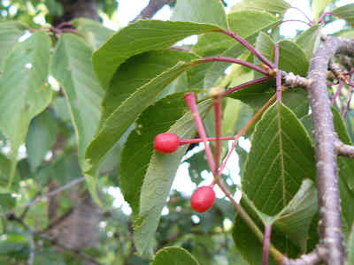 胡摩ヶ岳山頂 大星さんのお言葉に甘えて山頂にてビールを飲ませて頂いた。山頂にて飲み干すビールの味は格別であり、単独行では出来ない楽しみの一つである。胡摩ヶ岳山頂から眼下には集落も見えているのだが、やはり黄砂の影響は甚大であり、写真には写らないようだ。桜の木の近くに行き自然のサクランボを鑑賞した後、下山を開始する。