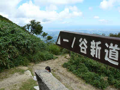 滑りやすいザラメ状の道が目立って来ればやがて松茸岩が現れる。この岩はまさに松茸である。この岩を過ごせば、間もなく下山方向へ向けて進路を左に採る。簡易な貯水施設の前を通過すれば手製の一ノ谷新道の案内の置かれた場所に到着。この道は入口の案内が分かり難いように感じた。