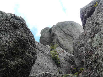 この先に続くのは岩・岩・岩、先行者は次第に歩くスピードが遅くなり、いつの間にか私が先頭に立ってしまった。後続者は少々バテ気味なので、しっかり写真を撮りながら一気に高度を稼ぐ。それにしてもすごい岩が続く。周囲に笹が増えてきたので岩は終わりかと思えば、更に岩場が続く。