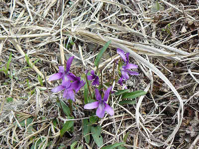 先頭はいつもの山歩きと一緒で先生が歩き、次に施さんが続く。私はいつものように最後尾からゆっくり写真を撮りながら進む。最初に見つけた花はスミレの花、なかなか可愛い花が咲いている。この先ですぐにガレ場を踏むことになり、慎重に歩を進める。眼下に大きく滑り落ちたような場所を通過すれば、足下には小石混じりの歩きやすい道が続く。