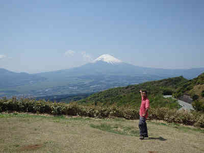 まるで遊歩道のような快適な道を進んでいると、ピンクの三つ葉ツツジが咲いている。背の低い自然林の下を進むので、足下はとても明るく、日差しを感じながら歩くのは楽しいものである。やはり木の間越しになるが、山頂に雪を頂いた富士山は、地方から来たものにとって最高のプレゼントである。