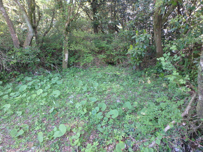 右に八天林道を過ごす所で、進路を左へ採る。八天岳の案内に従い更に緩やかな傾斜の道を辿れば、右にアンテナ施設の置かれた八天岳の山頂へ到着した。この施設の反対側には旧海軍の砲台跡が残っていた。