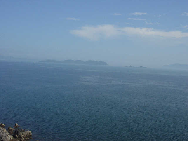 瀬戸の展望 木漏れ日程度の日差しも今日は殺人的な暑さで、風もなく少し進んでは立ち止まり、用意した1リットルの水はすぐに底をついてしまった。今までの登山の中で一番苦労した竜ヶ岳を思い出した。峨嵋山はほんの100m程度の山だけれど10倍の高さに感じる。アップダウンを繰り返しながら、時々かいま見る象鼻ヶ崎の美しい風景も早く水がほしいという気持ちが先にでて上の空で見ている。