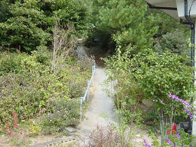 道標に従い左折すると華光寺の境内に入ることになる。まずは華光寺に参拝して本日の登山の無事と本日の試験の合格を祈願する。住居の横を抜けて行き、左奥の道から青い手摺りのついたコンクリート道を進み登山道に入って行く。登山道はすぐにシダの道となり最初から坂がきつい。