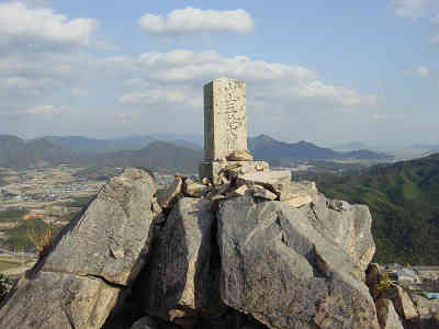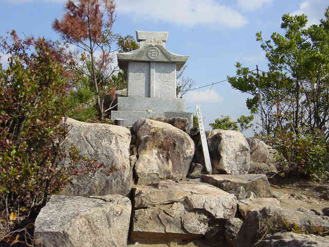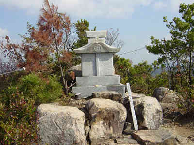 すぐに役行者の像と出会い、岩の道を乗り越えなが少しずつ高度を上げて行く。最後の急坂をゆっくりと越えて行き、石祠が待っている火の山山頂に到着した。