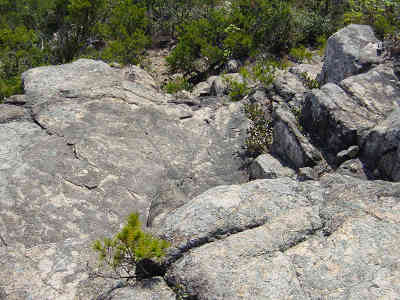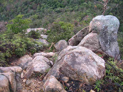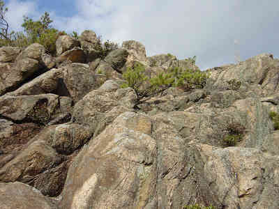 山頂方面を俯瞰すると山頂の岩が険しい。これから先に出会うであろう未知の展望を期待して久しぶりにワクワクしながら先を急ぐ。