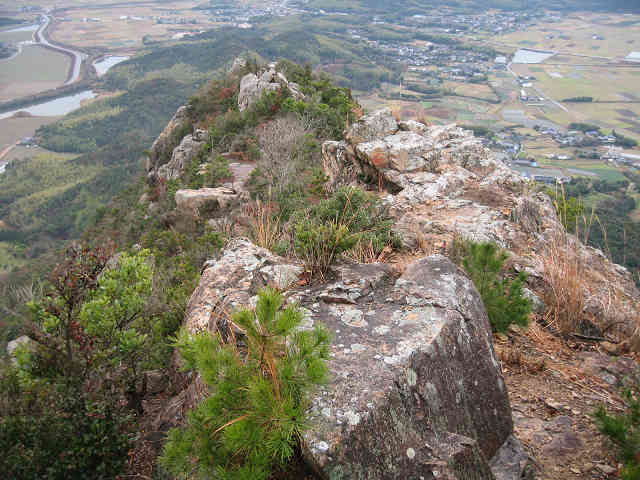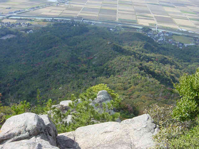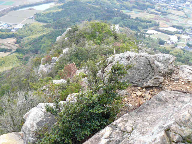山頂から真下を覗くと肝が冷えるような展望が広がっている。また、遠くには防府の楞厳寺山が綺麗な山頂を見せており、岩屋山の向こうには東西鳳翩山が広がっているのが見える。しばらく山頂からの展望を楽しんだ後下山を開始する。